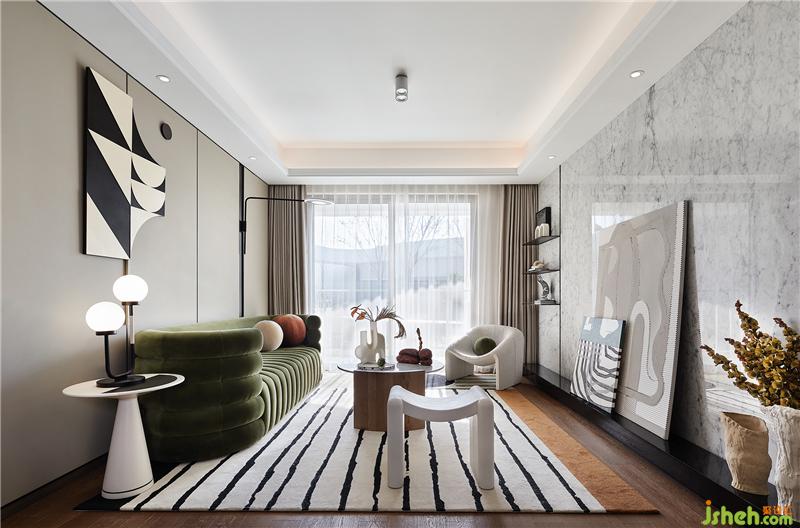 區(qū)別于以往的會(huì)客模式,當(dāng)代客廳更加注重人的情感接收與表達(dá)??蛷d避開(kāi)了方正轉(zhuǎn)角,采用包裹狀的、動(dòng)態(tài)的陳設(shè),以一種隨性的維度詮釋別樣的體驗(yàn)與愉悅。