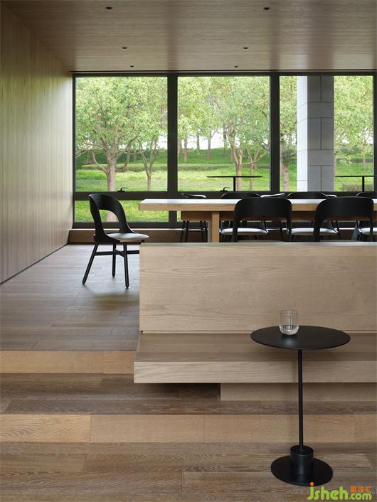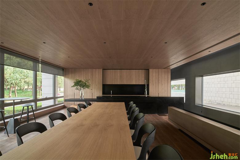 辦公室設(shè)計(jì)挑空處通道,仿若悠長(zhǎng)的小巷。循步深入,餐廳予以木質(zhì)包裹出靜謐之感,多元的落座形式,高低錯(cuò)落的關(guān)系勾勒輕松的氣氛。