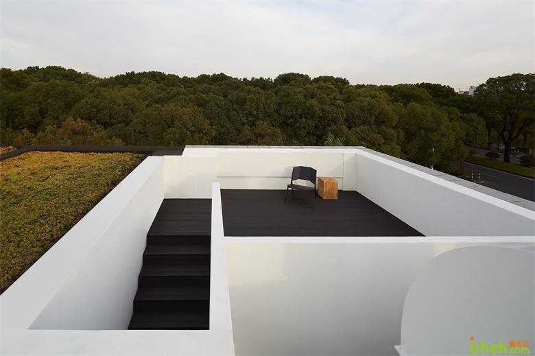 南側(cè)和西側(cè)分設(shè)兩個(gè)露臺(tái),讓員工也能置身于戶外自然之中,游目騁懷,與藍(lán)天綠意相依偎,在工作與閑適的狀態(tài)間無(wú)縫切換。