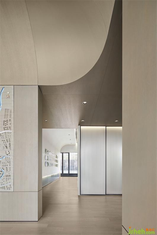 訪客視線隨著多樣元素的層疊錯落,輕松、舒適的洽談區(qū)域便呈現(xiàn)在眼前。得益于對透視法則的精準把控,多種落座形式的布局,尺度感與秩序性依舊合理且清晰。南京售樓處設計臨窗處,沙發(fā)、飾品的形狀,同樣飽含深意,與弧形的建筑外立面巧妙關聯(lián)響應。