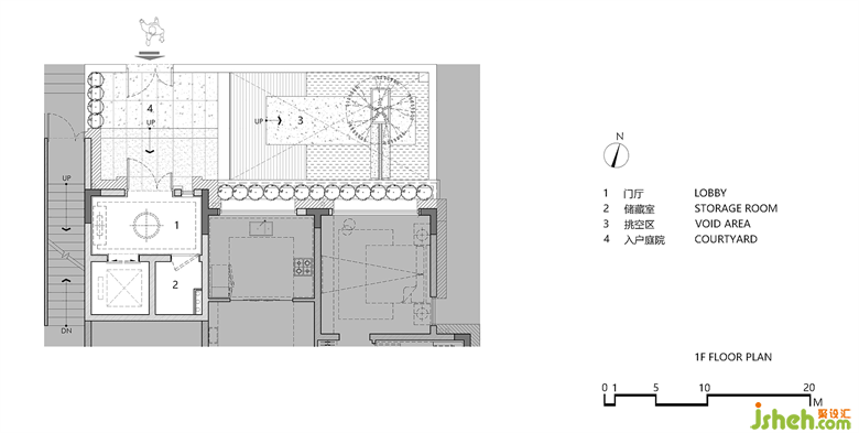 地下層內(nèi)庭院自成一方靜謐天地,素雅干練的用材與水景園林交相輝映,滌蕩開無盡的人文雅趣。在藝術(shù)的構(gòu)造下,建筑本身與周圍環(huán)境和諧交融,恍如遁回桃花源,忘卻世間塵與煩?;勇?lián)通中,可謂室內(nèi)戶外,各有風(fēng)韻。