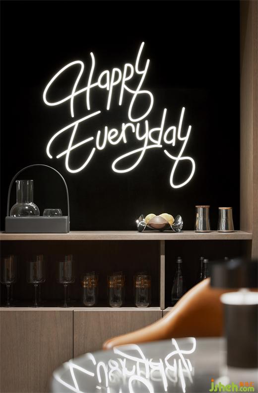 作為客廳向外的延伸,陽臺精巧與閑適并存。南京樣板間設(shè)計(jì)多功能柜體與發(fā)光裝置默契搭配,儼然化身一派迷你吧景象,或推杯換盞,或自省獨(dú)思,一舉卸下滿身的疲憊。