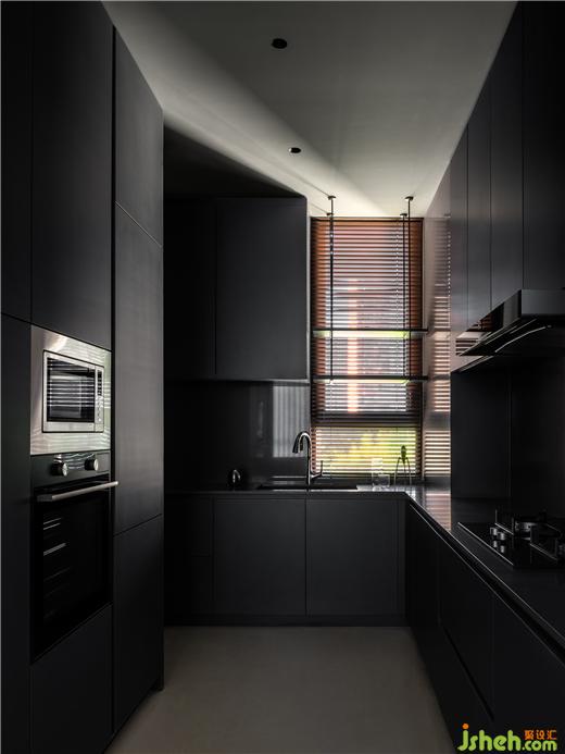 體貼周全的設計也離不開對廚房內外部的關系梳理。疊墅設計有效擴大原始廚房尺度,并增設雙通道步入模式,打開與公共區(qū)域的聯(lián)動。于內合理排布,提升實用效率,在暗黑靜謐的調性里,無聲流淌卓越質感。