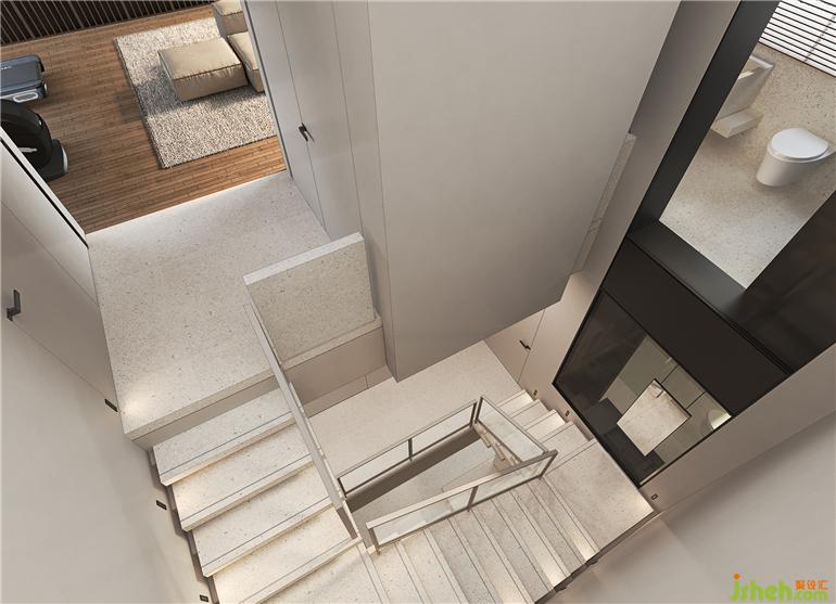 整合原有建筑柱體并加以利用,銜以踏步平臺建構起書吧與樓梯,從而塑造相應布局。疊墅設計可提供不同方向的穿梭選擇,又以完整的體量感自成一景。不斷的層疊與解構,既呈懸浮之意,又精進細部,耐人尋味。