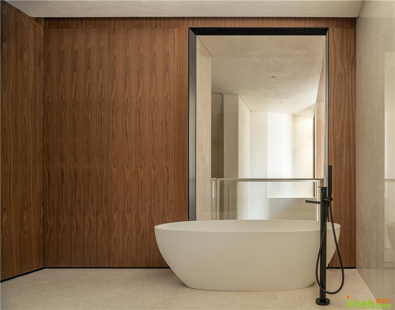 衛(wèi)浴空間以臺(tái)盆鏡柜充當(dāng)樞紐向外圍發(fā)散,調(diào)動(dòng)多維感觀,給予便捷呵護(hù)。疊墅設(shè)計(jì)在光線引入和氛圍營(yíng)造上也細(xì)致規(guī)劃,浴缸臨窗而設(shè),內(nèi)外交融對(duì)話,讓沐浴變得更加愜意與趣味。