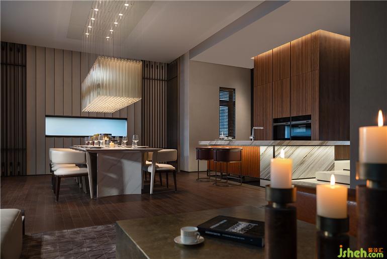 客餐廳于橫軸上聯(lián)動而設(shè),熟悉的金屬格柵對稱散布于四角,開闊大氣的東方格調(diào)不彰自顯。常州天安別墅設(shè)計背景墻石材對拼奠定客廳沉穩(wěn)俊朗的主基調(diào),軟裝陳設(shè)將大氣雅致與質(zhì)感表現(xiàn)相平衡,以期互補共生。燭火搖曳,美好愉悅氛圍也隨之渲染。