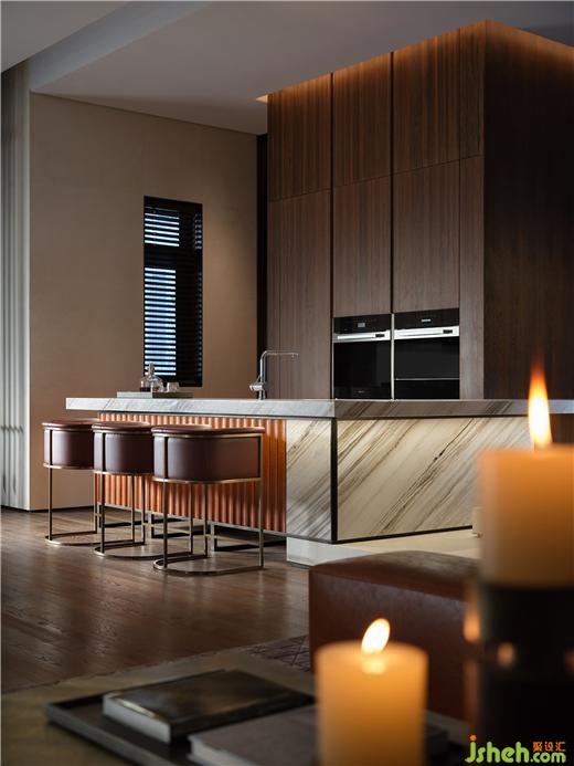 常州天安別墅設(shè)計以融洽的存在,表達(dá)靜謐自由的本色。將木盒子渾然嵌入,中廚于內(nèi)、西廚于外,這包含著對每一寸空間的周全應(yīng)用,也是對功能需求的完善與補(bǔ)充。