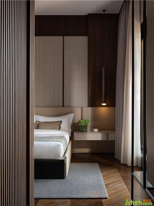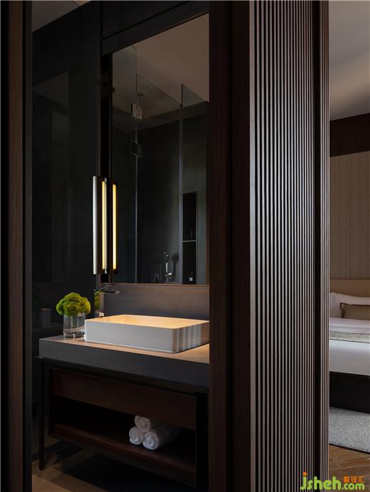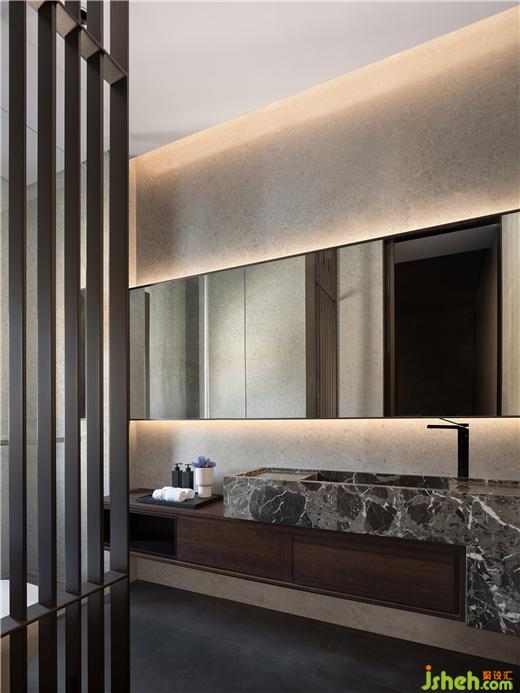 格柵以一氣呵成的過渡關(guān)聯(lián),加強(qiáng)臥室與衛(wèi)浴空間的連貫性,立體而生動。