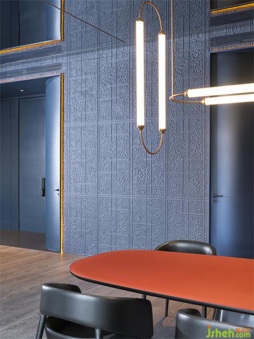 私宴廳延用相同材質(zhì)、造型手法與細(xì)節(jié)處理,以強(qiáng)調(diào)整體統(tǒng)一性。壁布上的連紋圖案恰似浮雕,又于共性之中凸顯一絲個(gè)性。窗外奔流不息的黃浦江,與上海當(dāng)代藝術(shù)博物館折射出新舊共存的城市記憶,也交匯出人與室內(nèi)、環(huán)境的多維情感,塑造獨(dú)特的空間體驗(yàn)。