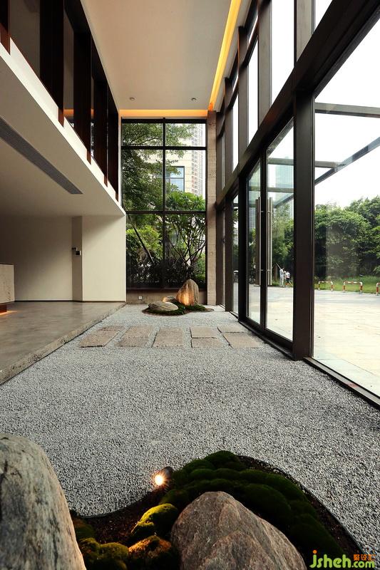 SILEX LIQUOR OFFICE 分為三層,一層功能:中空室內(nèi)枯山水花園 接待前臺 倉庫 更衣室。二層功能:品酒區(qū) 辦公室 紅酒窖。三層功能:威士忌吧臺 餐臺 玻璃紅酒柜 衛(wèi)生間??臻g與空間的分隔大部分都是玻璃,而相隔的空間一定有實質(zhì)上的互動需求。例如一層接待區(qū)與室外景觀以室內(nèi)枯山水聯(lián)系,一層與二層以中空園林聯(lián)系、辦公區(qū)與酒窖以全玻璃酒柜間隔聯(lián)系。