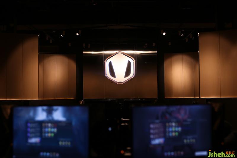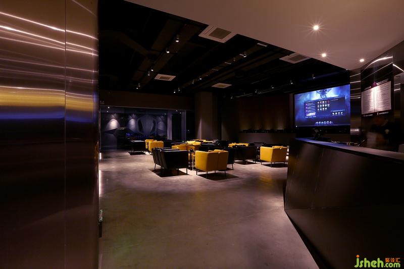 大面積的不銹鋼陪襯發(fā)光的蜂巢LOGO,形成張力和景觀;燈光創(chuàng)造出容易識(shí)別的清晰空間,讓人流離于現(xiàn)實(shí)與虛幻之中,體會(huì)到虛擬游戲的迷魅之感,以激發(fā)其潛藏在身體里的征服欲。