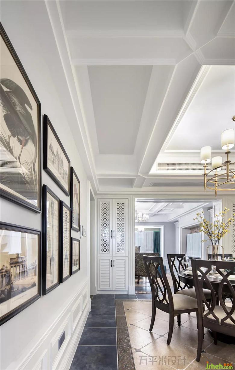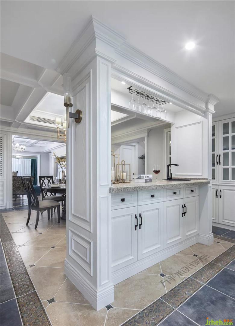 分隔出部分原有次臥將餐廳面積修正及擴大,因地制宜的以一組嵌入式餐邊柜作為隔墻進行收納。裝修公司
