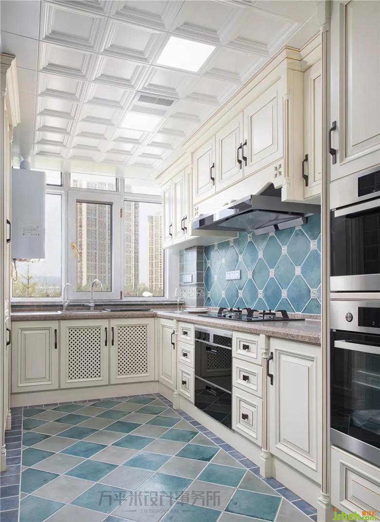 外推后空間寬敞采光良好的廚房,明亮窗外即為綠植及水岸美景。通過(guò)極簡(jiǎn)的通透清玻移門,將北向自然光線引入餐廳區(qū)域,補(bǔ)充餐廳采光。大型廚電嵌入式安裝于高柜以求操作臺(tái)面的清爽。