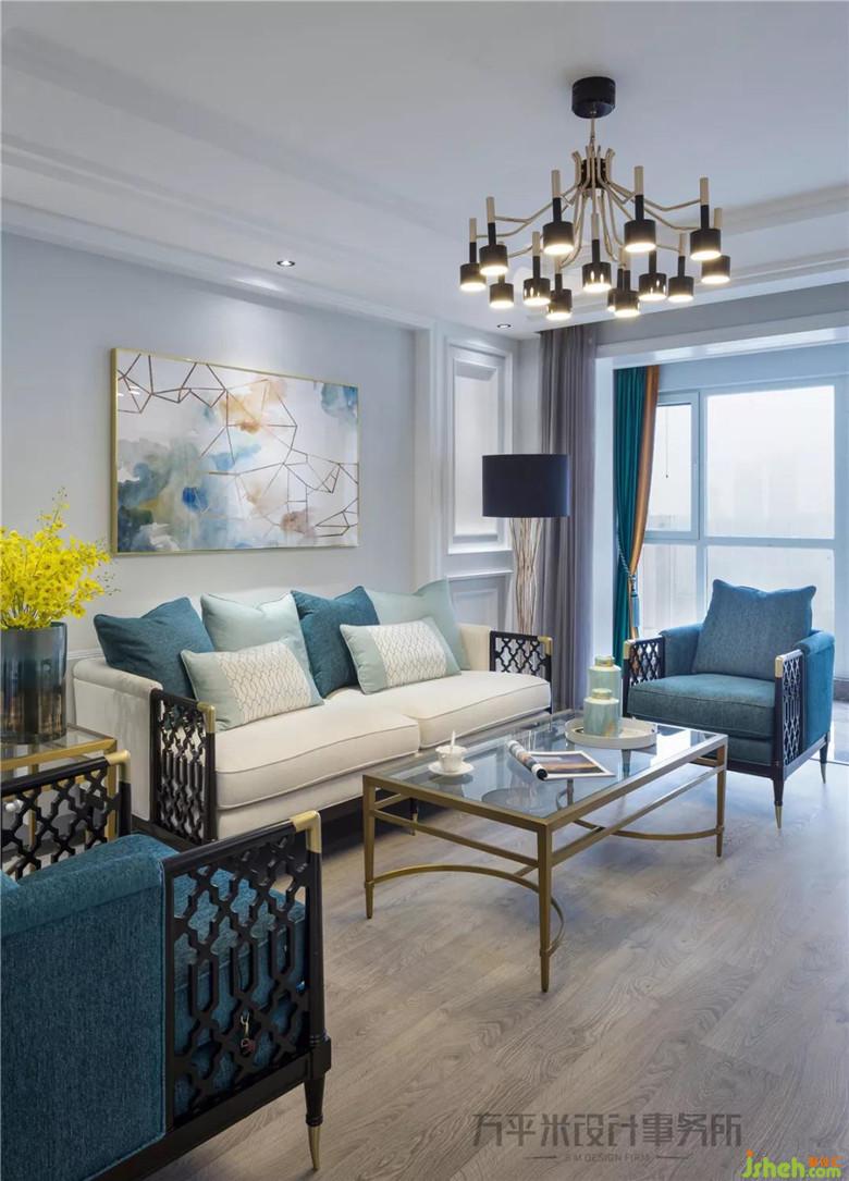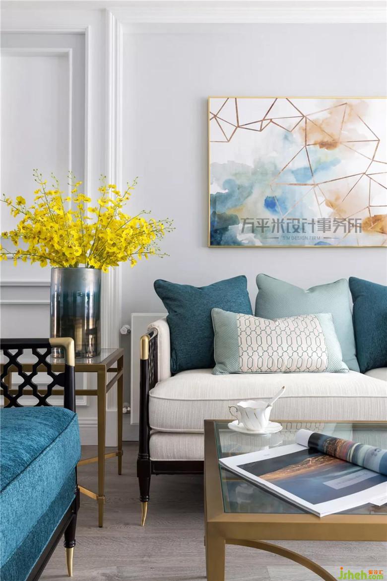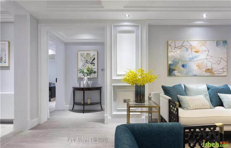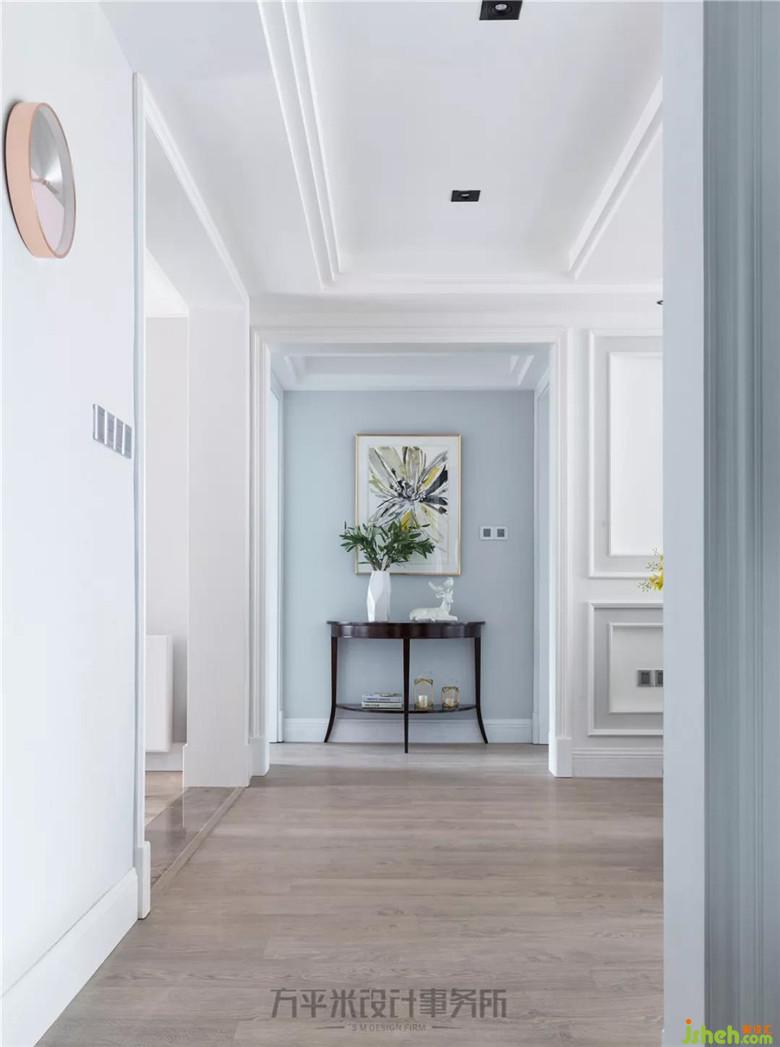 走廊盡頭的繁花裝飾畫作,推門入戶即映入眼簾,為全屋淡雅清新灰藍(lán)色調(diào)帶來芬芳甜美的寫意裝點(diǎn)。裝修公司