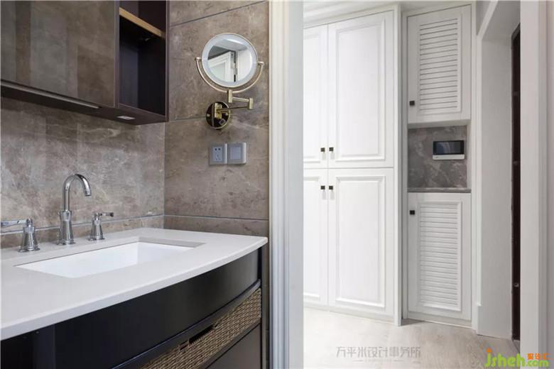 走廊一側(cè)的開放式干區(qū)洗手臺(tái),方便使用。