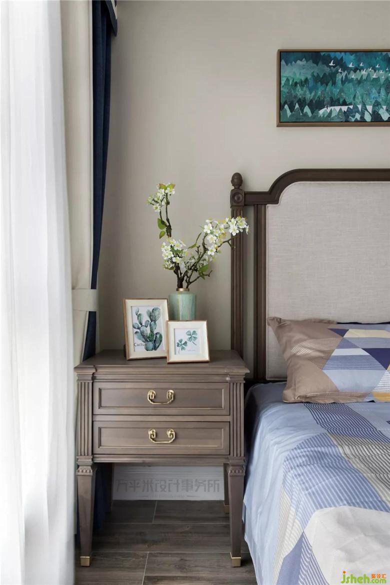 藍(lán)綠色調(diào)輕柔棉麻與灰咖原木材質(zhì),營造溫馨自然的睡眠環(huán)境。