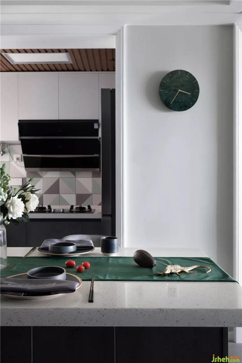相鄰空間形成一體,功能性及空間感均有提升。對開門冰箱嵌入墻體轉(zhuǎn)角一側(cè),不顯突兀。