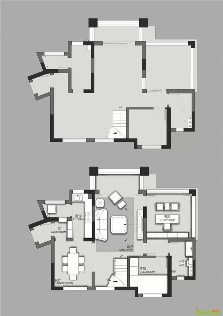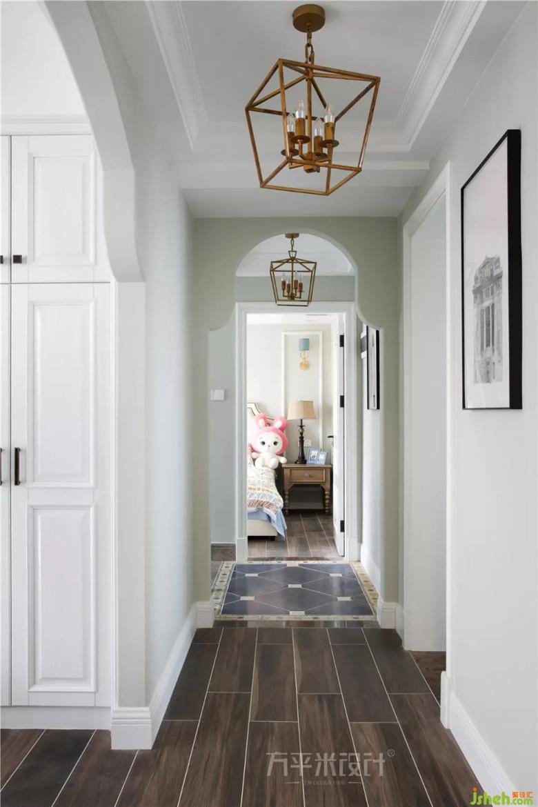瑜伽室與過道之間制作拱形造型門洞,與一層客餐廳間門洞造型遙相呼應(yīng)。