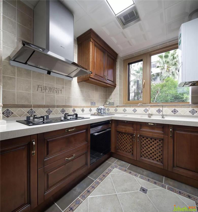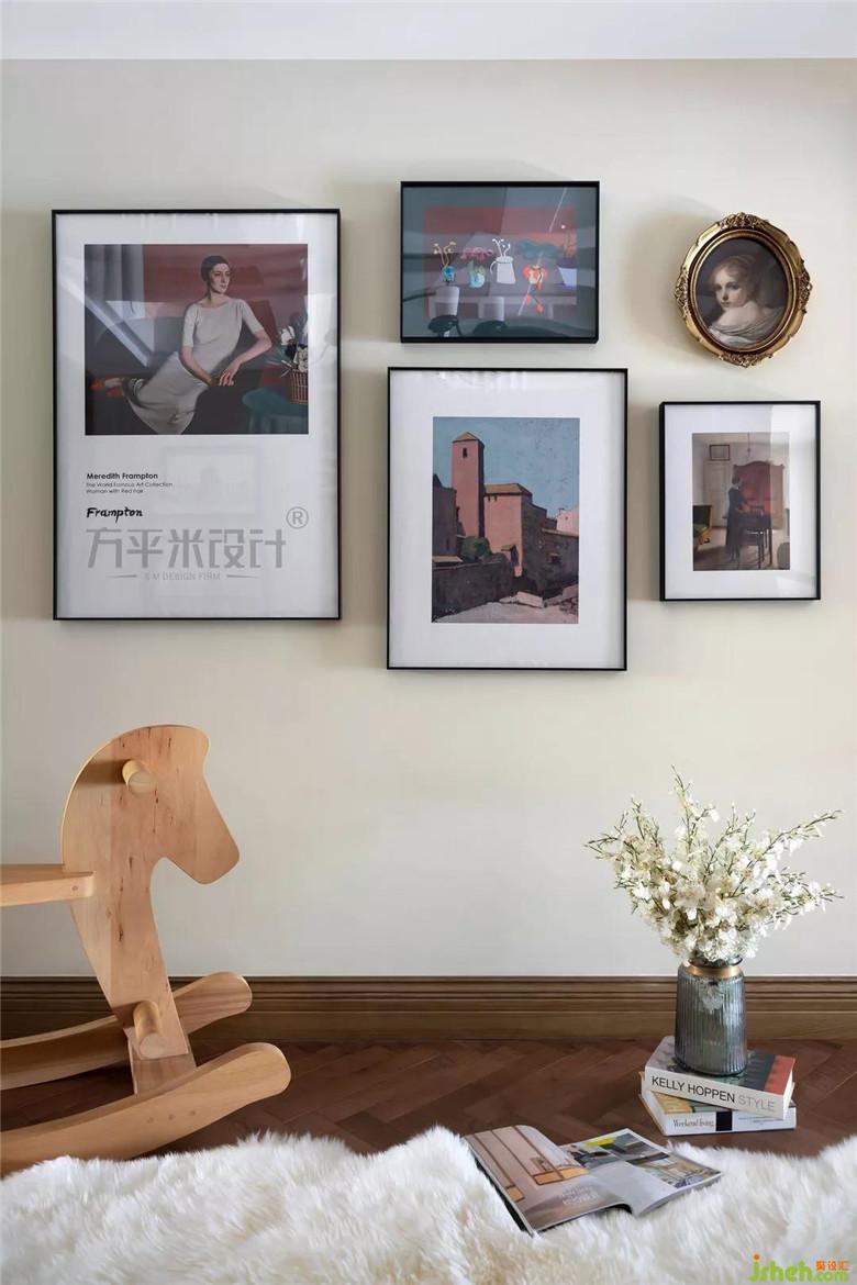 樓梯間綠色波導(dǎo)線和菱形地磚互相襯托,這也是古典美式風(fēng)格的元素代表。一樓除了運(yùn)用布法羅方格花磚的鋪貼之外,樓梯側(cè)板采用了巴洛克花紋地磚,單雙交錯(cuò)穿插的變化,摒棄了一貫樓梯間的呆板樣式。