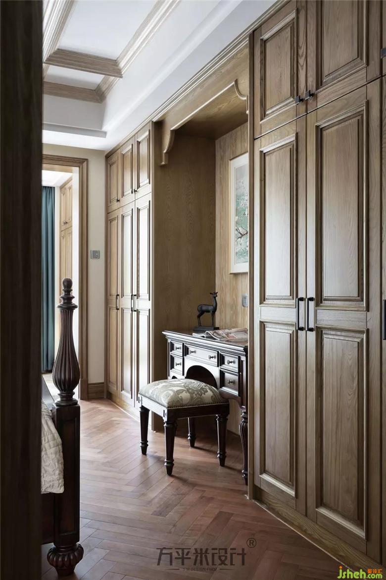 沉著冷靜的色調(diào)更顯屋主沉穩(wěn)內(nèi)斂的調(diào)性追求,梳妝臺內(nèi)嵌入衣櫥,在每個清晨都會迎來它的主人,妝點著生活的每一場精致。