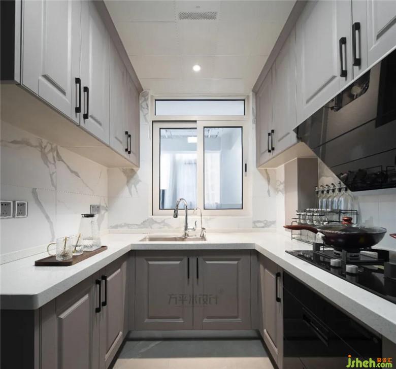 打造U型櫥柜布局,滿足業(yè)主對廚房儲物功能的高需求。