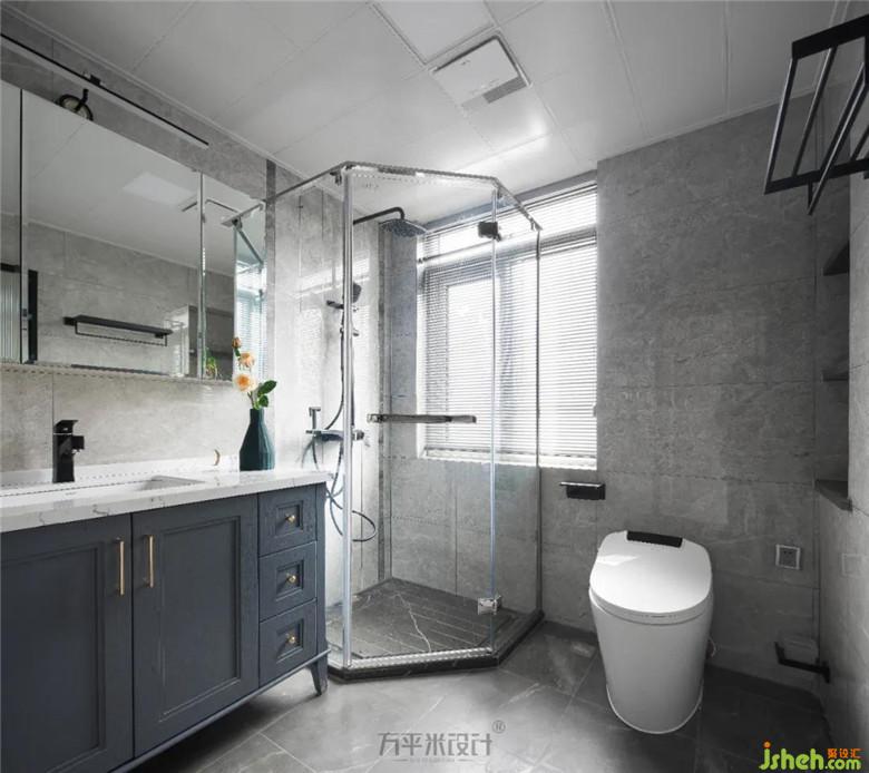 運(yùn)用同色系瓷磚鋪排,使空間寬敞潔凈。兩側(cè)的鏡柜及壁龕區(qū),兼具實(shí)用性與美觀度。