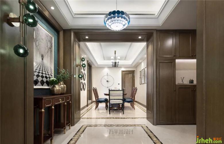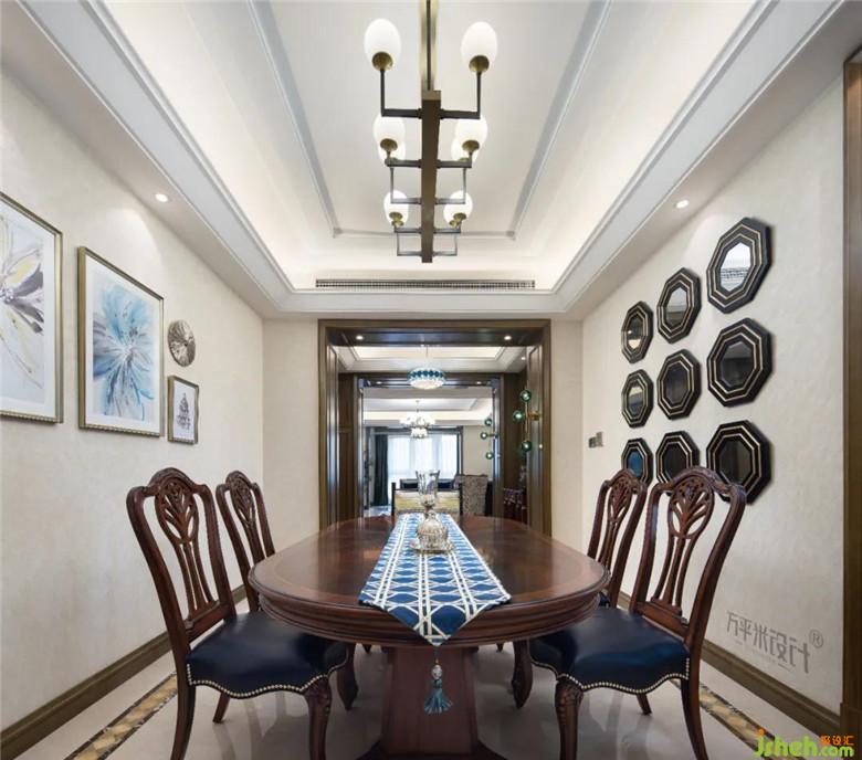 裝修公司設(shè)計(jì)過程中繼承著傳統(tǒng)文化思想,特意搭配兩把中式造型餐椅與美式家具進(jìn)行混搭,其內(nèi)在的東方韻味與木色調(diào)的質(zhì)樸感相交織,刻畫出不同文化之間的沖突感,顯現(xiàn)出時(shí)代的印記。