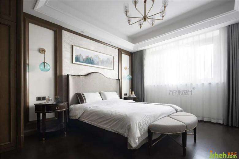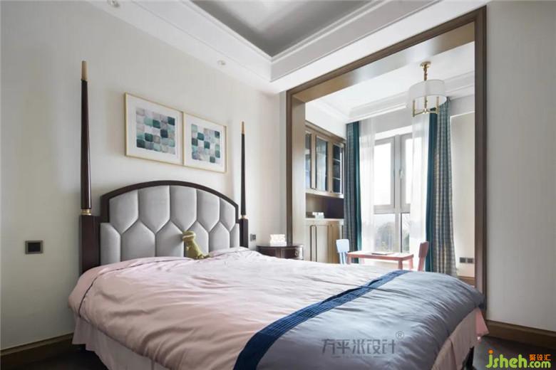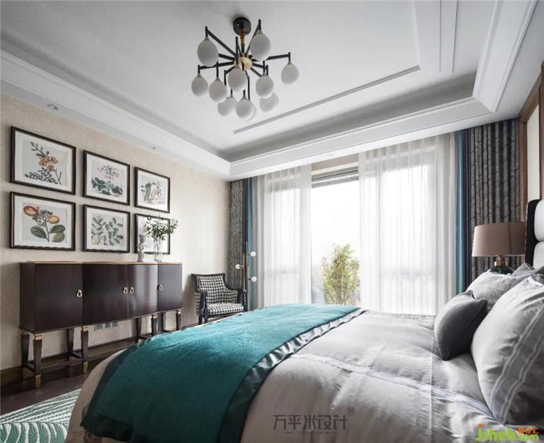 白色紗簾與拼接印花的遮光簾,復(fù)古的暗色斗柜及優(yōu)雅姿態(tài)的千鳥格單椅,自然氣息的地毯呼應(yīng)植物聯(lián)排裝飾畫,材質(zhì)與色調(diào)的協(xié)調(diào)關(guān)系,恰到好處的呈現(xiàn)整體美感。