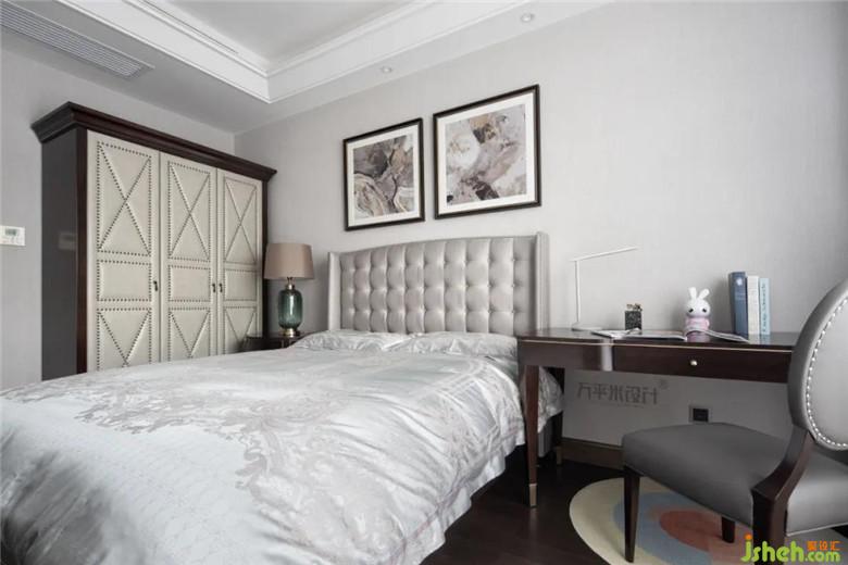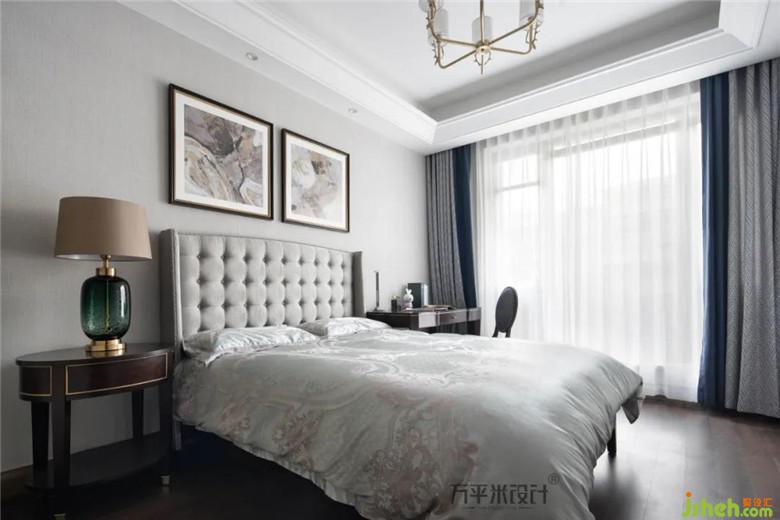 原有硬裝趨于簡(jiǎn)單,軟裝則融合部分輕復(fù)古的木質(zhì)元素及美式線條,以潑墨形式的裝飾畫和金屬質(zhì)感吊燈讓空間簡(jiǎn)潔明朗具有層次感。