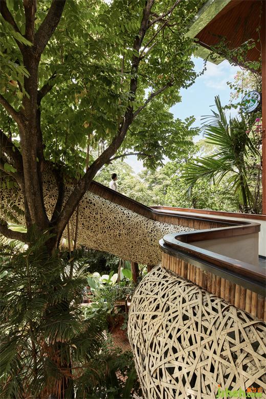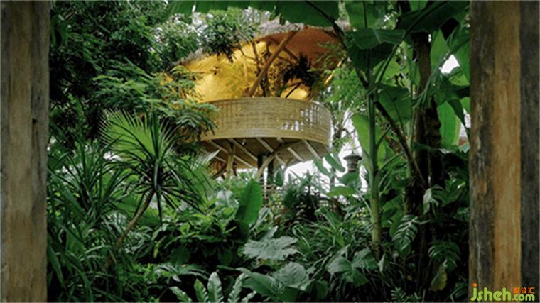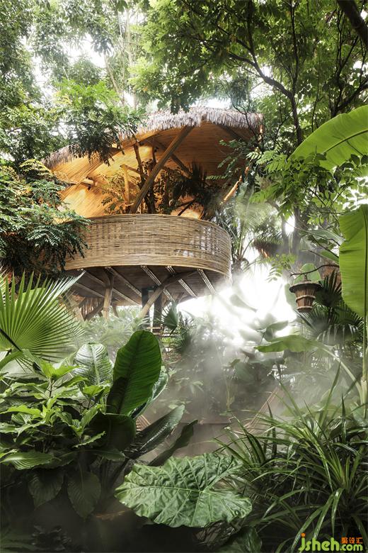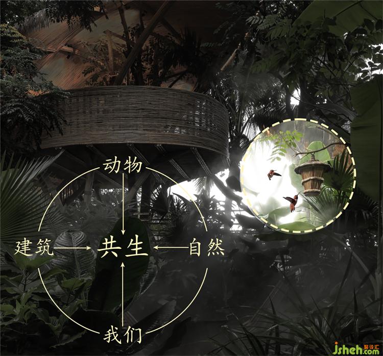 我們?cè)跒槿祟愒O(shè)計(jì)體驗(yàn)空間的同時(shí),我們并沒(méi)有去驅(qū)逐甚至破壞“原住民”的家,我們將小鳥的住所藝術(shù)化保留了下來(lái),每一處設(shè)計(jì)細(xì)節(jié),都盡可能尊重自然,融合自然,將建筑本身化作雨林的一部分。