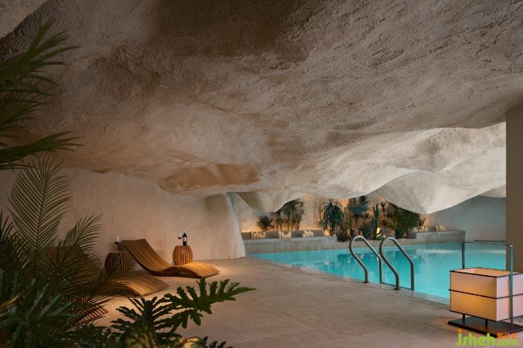The design of the swimming pool area is inspired by the discovery of a mysterious underground hot spring. Legends of surging underground hot springs stir the curiosity of every adventurous heart. The curves and undulations of the ceiling shape a spectacular scene reminiscent of a natural karst cave.