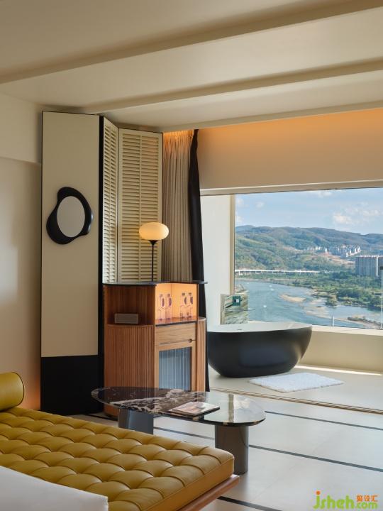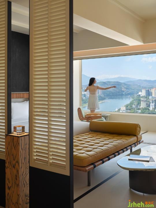 特別設(shè)計的陽臺與泡池是這一空間的點睛之筆,住客可以在此俯瞰瀾滄江,將無垠的江景盡收眼底?!敖魍疝D(zhuǎn)繞芳甸,月照花林皆似霰”——酒店的現(xiàn)代摩登設(shè)計仿佛在編織一場既超然又令人難忘的夢境。