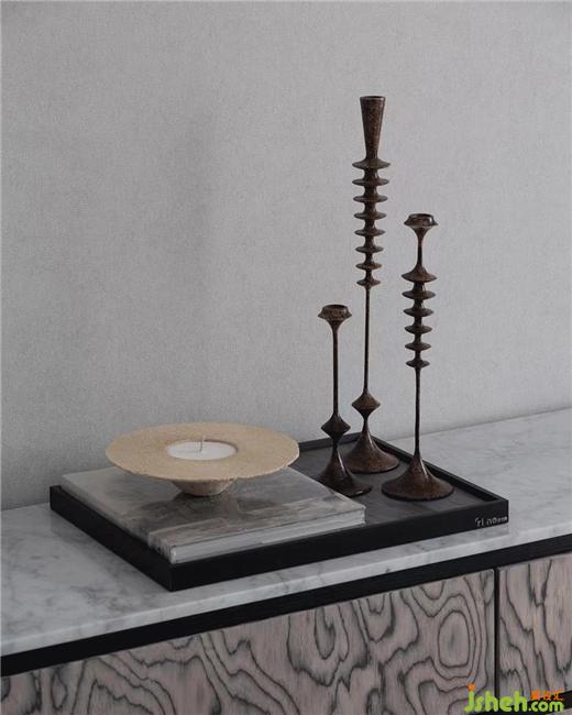 書架上的藝術(shù)裝飾,正在以抽象的方式講述著空間美學(xué)。