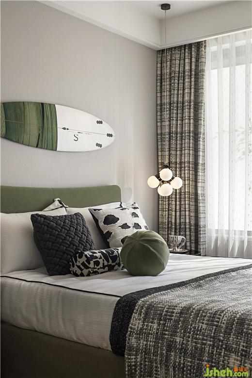主臥設(shè)計(jì)靜謐奢雅,柔和的色調(diào)與天然木飾互相映襯,空間彌漫著溫潤(rùn)的美好意境。一旁垂落的藝術(shù)吊燈,在提升空間趣味的同時(shí),豐富了空間格調(diào)。