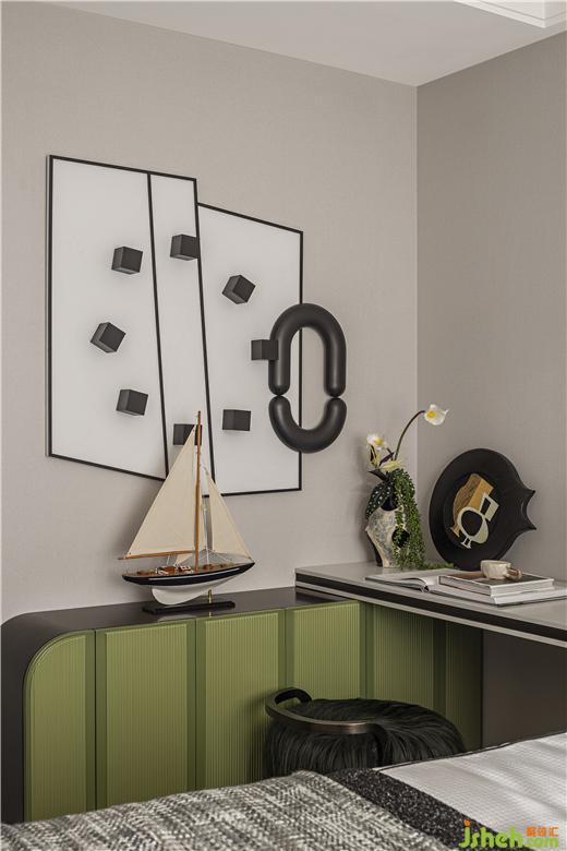 梳妝臺(tái)、椅凳、藝術(shù)裝飾……濱江澄虹府樣板房設(shè)計(jì)將線與面完美結(jié)合,豐富了藝術(shù)形態(tài)在空間里的多層次變化。