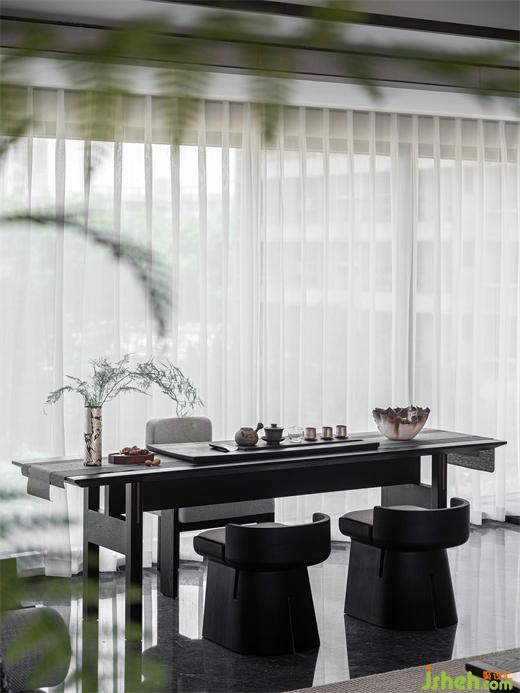 設(shè)計(jì)師認(rèn)爲(wèi),家作爲(wèi)銜接情感記憶的空間,應(yīng)打破傳統(tǒng)茶室?guī)?lái)的距離感,形簡(jiǎn)、存意、富有底蘊(yùn),以純粹自然爲(wèi)本,塑造當(dāng)代人的詩(shī)意場(chǎng)景。