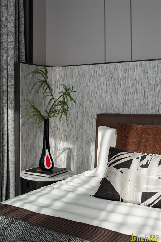 詩意的呈現(xiàn),質(zhì)樸的雕琢,次臥以純粹的設(shè)計手法平添幾分松弛感。一尊花瓶,三兩枝葉,則為空間注入無限的情意與浪漫。