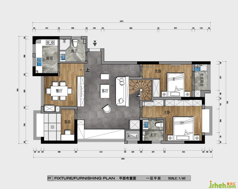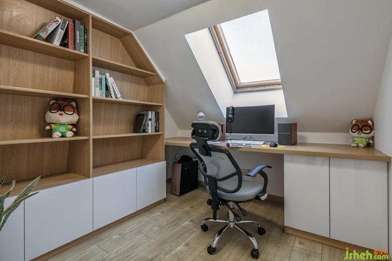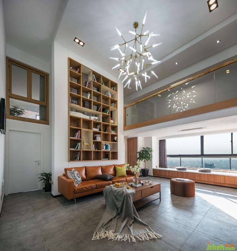 一面書柜墻作為整個空間的視覺重心,立于客廳,近五米的高度重塑空間維度,使這一頂層挑高空間頓時有一種復(fù)式大宅的視覺沖擊感;餐廳地面用抬高地面的設(shè)計手法,讓餐廳與客廳有了自然過渡,同時餐廳地面選用顯紋啞光實木地板,讓餐廳空間更具溫暖和愜意的用餐環(huán)境;整個空間均采用簡潔設(shè)計手法,化繁為簡,墻體大面積采用乳膠漆刷白,在儲物上采用調(diào)性隱藏收納,讓整個空間更具整體性。