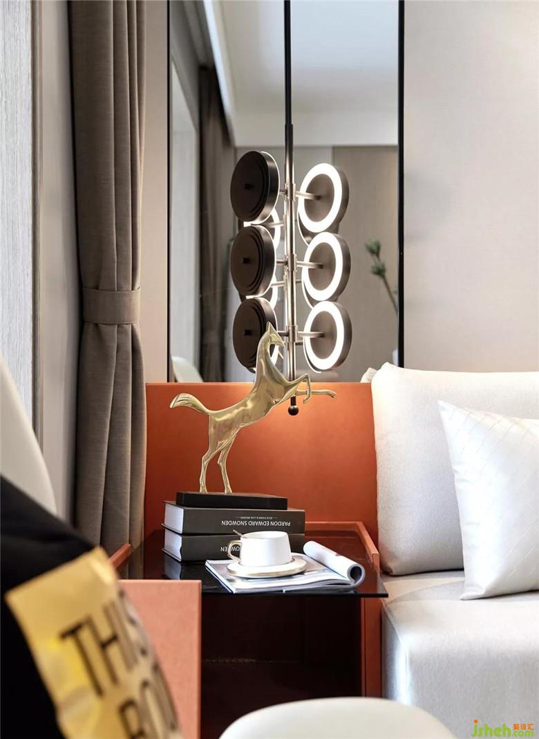 藝術(shù)以各種形態(tài)被融入到飾品、掛畫、家具細(xì)節(jié)中,通過(guò)巧妙的構(gòu)成搭配,形成雅致溫馨的視覺符號(hào)轉(zhuǎn)換到空間中,敘寫生活的詩(shī)意浪漫。