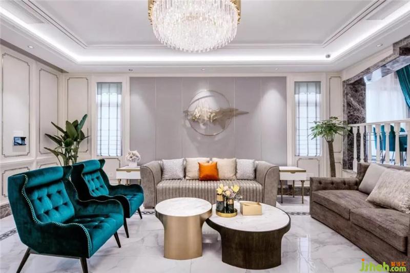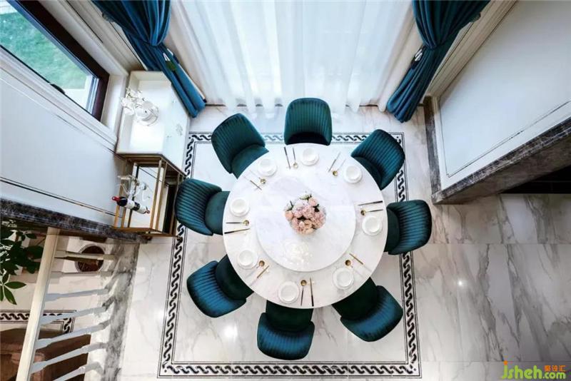林語堂先生曾說:“在藝術(shù)作品中,最富有意義的部分,即是技巧以外的個(gè)性?!倍鴤€(gè)性,則是不要千篇一律。本項(xiàng)目軟裝陳設(shè)的主題是創(chuàng)新融合,跳色的配色處理,和家具的混血風(fēng)格,提煉傳統(tǒng)家居中的經(jīng)典元素,雜糅進(jìn)現(xiàn)代化家居設(shè)計(jì)中,以現(xiàn)代人的審美需求來打造富有韻味的家居,讓含蓄古典的優(yōu)雅氛圍與清雅的現(xiàn)代生活美學(xué)并存于一個(gè)空間。形態(tài)簡潔且不失尊貴感的弟子規(guī)茶幾,造型端莊含蓄的圈椅,透露出居住者的文化底蘊(yùn)和良好家風(fēng),距離是讓一切回歸美好的開始,人與家具宜人的尺度感,在于相互顧盼、彼此生動(dòng),隱隱的“人文關(guān)懷”,讓家開始有了靈性。每一個(gè)空間的色調(diào)都在傳遞的是簡單和放松,家居的線條處理也令室內(nèi)的整體視覺更加協(xié)調(diào)。刪繁去奢的家居陳設(shè),呈現(xiàn)的是富有格調(diào)而不顯壓抑的家居氛圍。張愛玲說:“中國人好吃,我覺得是值得驕傲的,因?yàn)槭且环N最基本的生活藝術(shù)?!庇谑遣惋嬑幕镉辛藮|方文化的精致與團(tuán)圓。藍(lán)色是夢想的底色,它被賦予了感性的意味,所以,整個(gè)空間便是在一種不失精致的柔軟與簡練之間發(fā)生平衡,絲絨面料的溫暖均衡了石材的冷峻質(zhì)感,平衡出了最雅致的家庭氛圍??酥频牧舭啄茏屓梭w會(huì)生活的美好以及藝術(shù)的美感。墻面與地面不同的材質(zhì)和肌理,在同色系之間產(chǎn)生了層次和節(jié)奏的變化。一副20世紀(jì)Matisse馬蒂斯野獸派的抽象風(fēng)景,點(diǎn)亮整個(gè)空間。主臥的藝術(shù)紋理家具搭配富有肌理感的墻布,橫豎比例的白色框線呼應(yīng)室內(nèi)金屬質(zhì)感的燈飾,讓人的心中啟醒平和與滿足。燈光是黑夜里最明亮的溫度,而“家”是這個(gè)世間最偉大藝術(shù)。
