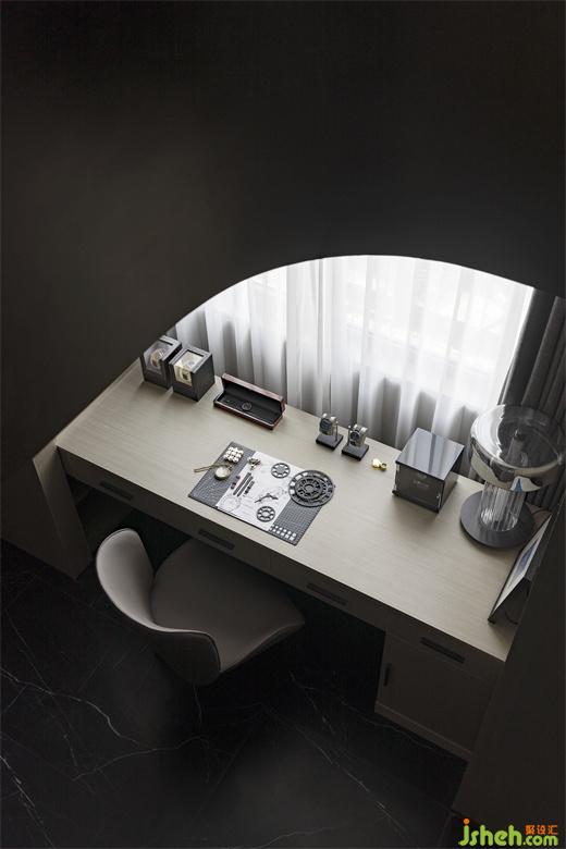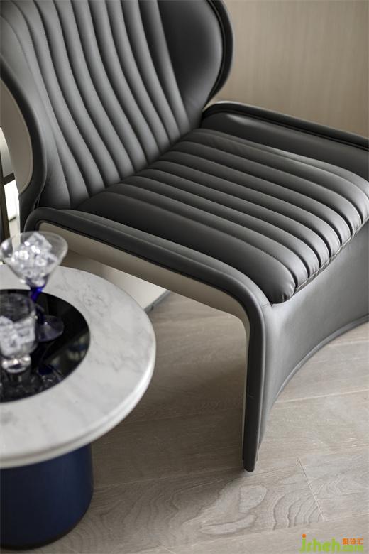 樣板房設(shè)計(jì)師利用社交群體記憶與空間的關(guān)聯(lián)轉(zhuǎn)化,建立起新的空間體驗(yàn)感,大膽利用黑色突出空間的嚴(yán)肅感,淺咖色系調(diào)整空間溫度感,用寶藍(lán)色增添空間活躍性,使人們對熟知的實(shí)物產(chǎn)生新的興奮感和舒適感,連接生活與藝術(shù),商務(wù)與圈層,打造屬于精英圈層的精神場域。