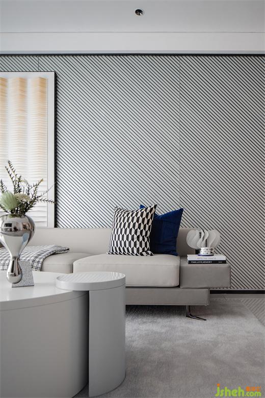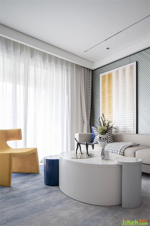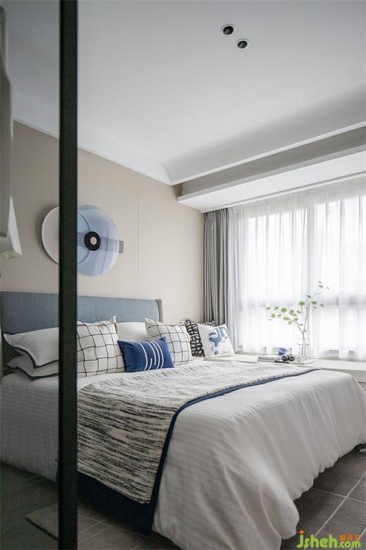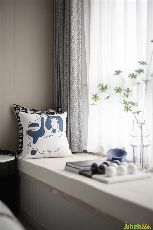 高級灰的色調(diào)也延續(xù)到了次臥,線條元素貫穿整個空間的設(shè)計(jì),陽光透過潔白的紗簾,樣板間設(shè)計(jì)處處散發(fā)出溫馨治愈的氛圍,諾大的空間被一抹藍(lán)點(diǎn)亮,在這樣慵懶和諧的空間中,舒適感被無限放大。