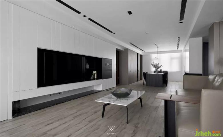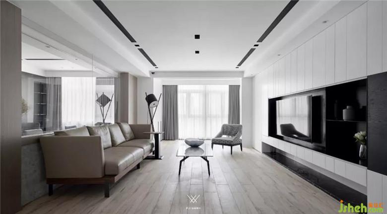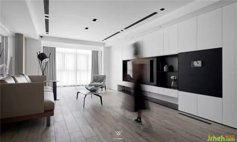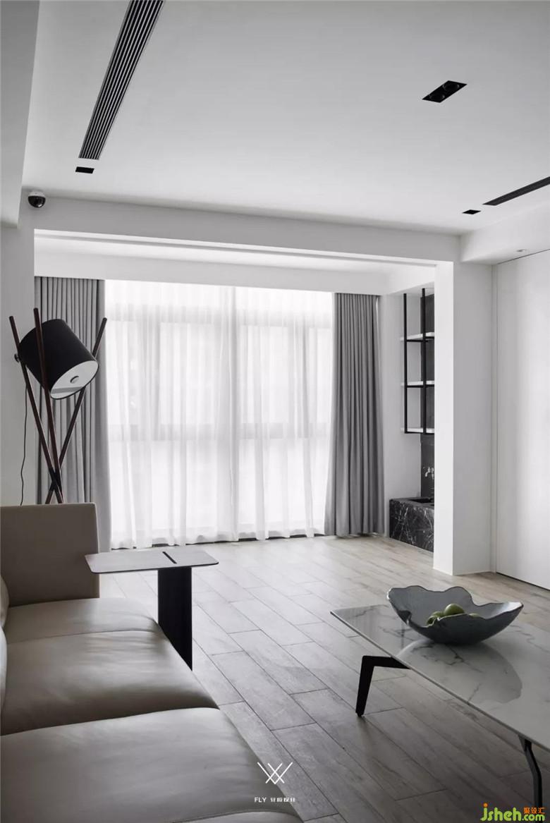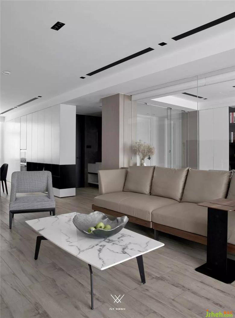 客廳整體采用的設計手法是減法,意在減去過多的裝飾,展現(xiàn)材質(zhì)最原始的面貌。