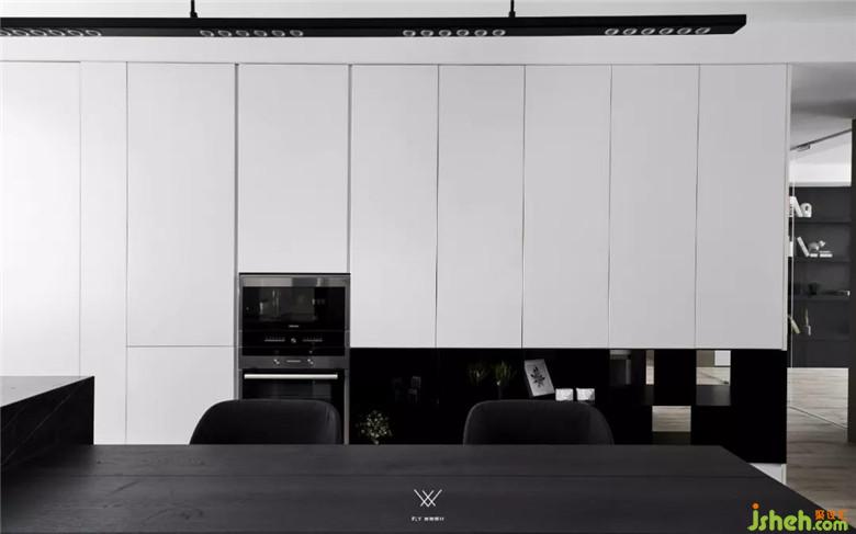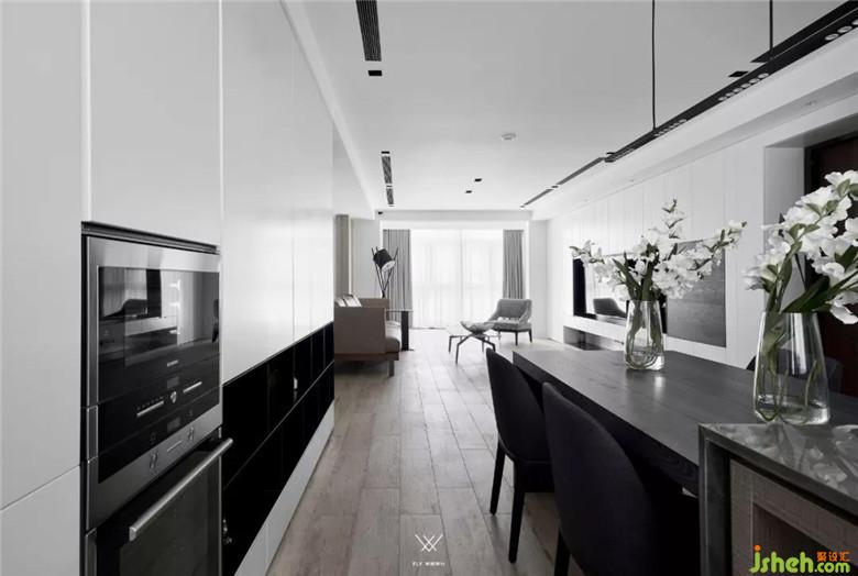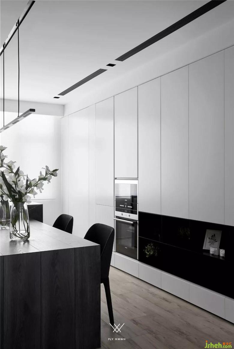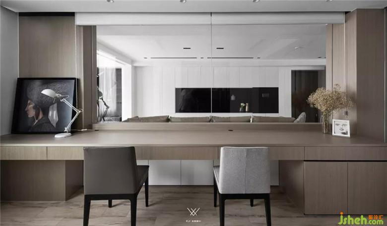 餐廳也采用極簡風的設計,為了增加質(zhì)感,餐桌基層、乃至飾面的強化地板都選擇了極為精致的材料,均由木匠師傅手工制作,匠心獨妙。