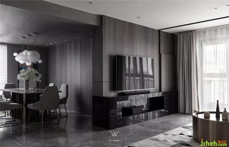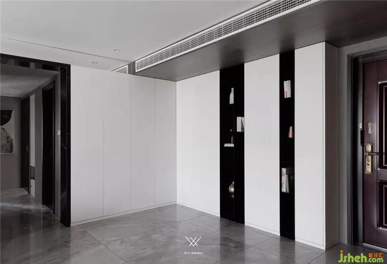 功能區(qū)的儲(chǔ)藏柜選擇白色的柜門,這樣和沙發(fā)背景的白色護(hù)墻板形成統(tǒng)一,整體性更強(qiáng),顯得更大氣。