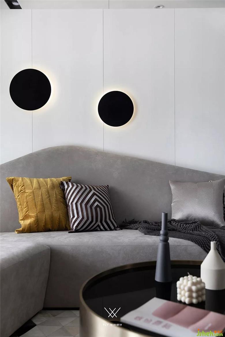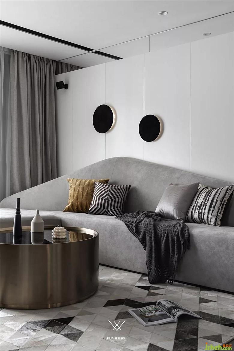 總體的結(jié)構(gòu)上用了大面積的塊面、線條和大小不同的圓形進(jìn)行組合,頂部的處理簡(jiǎn)潔清爽。