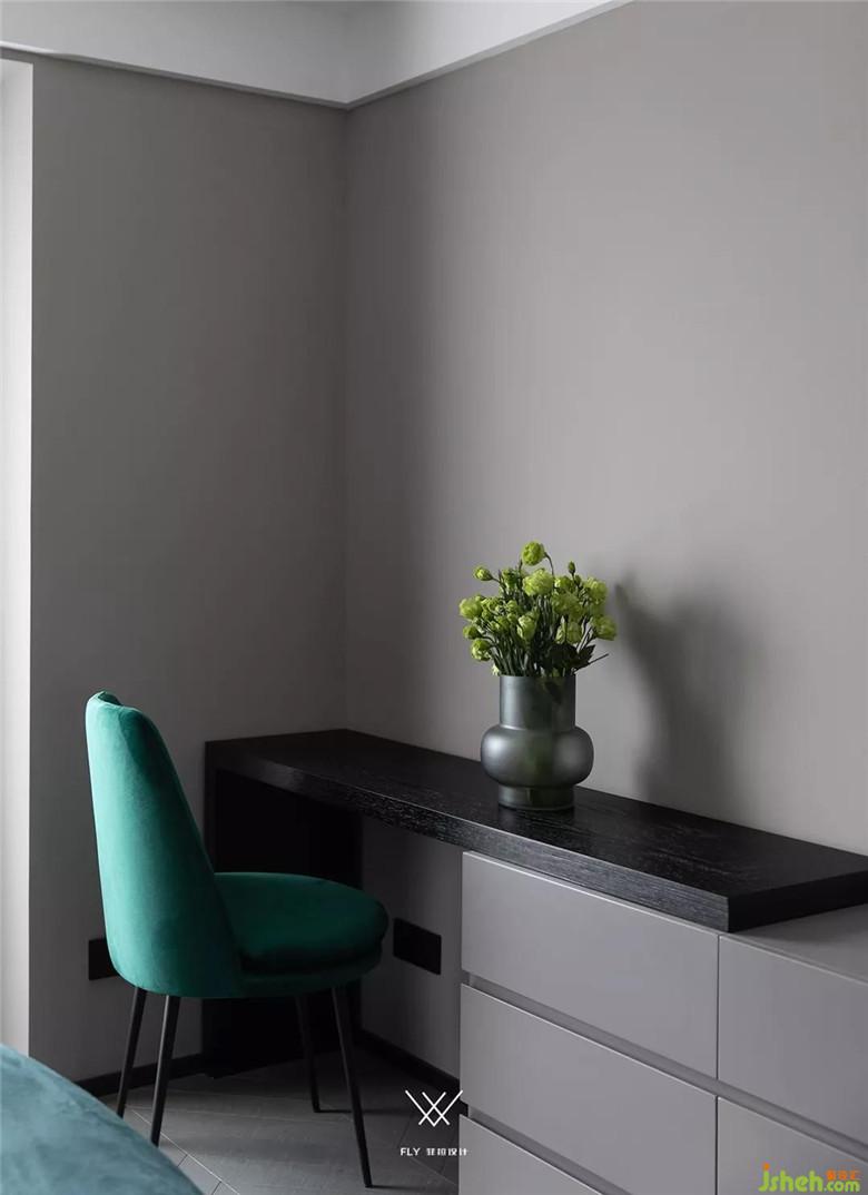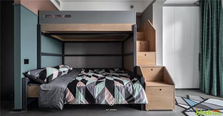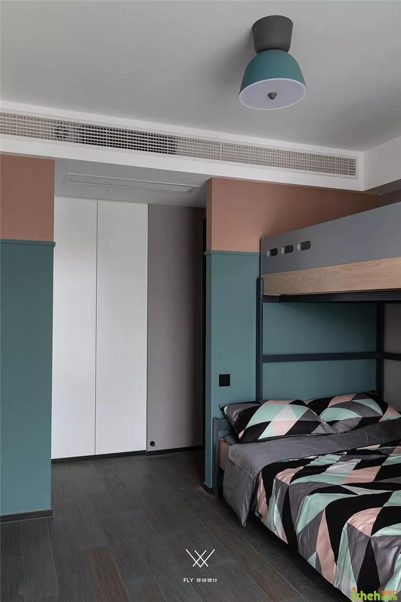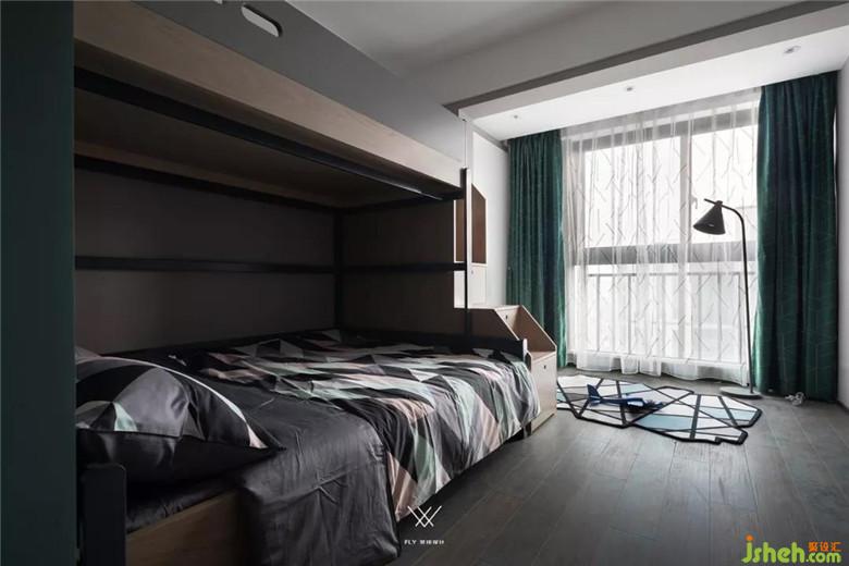 小孩房選取上下兩層的床,也是為業(yè)主二胎的考慮(雙重考慮更保險(xiǎn))。小孩房的床靠著墻面放置,這樣布置的床能夠給小孩提供更多的安全感。