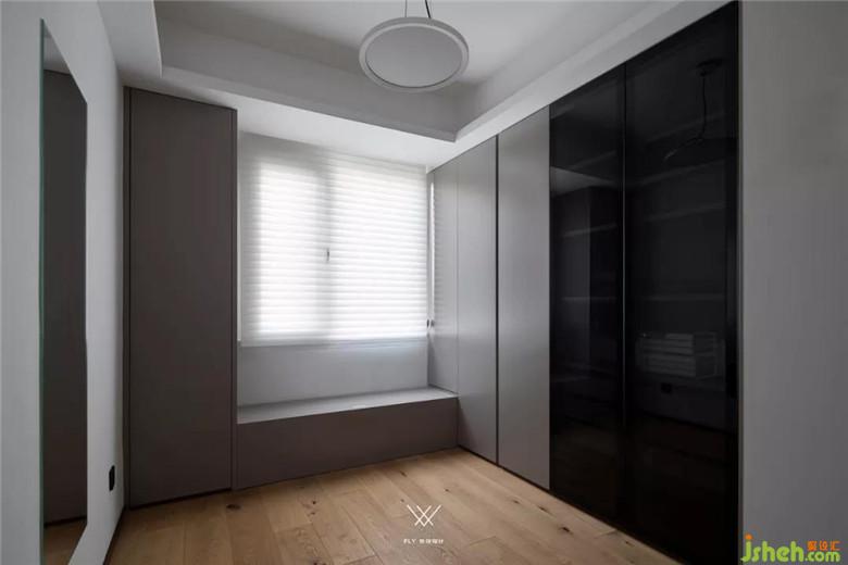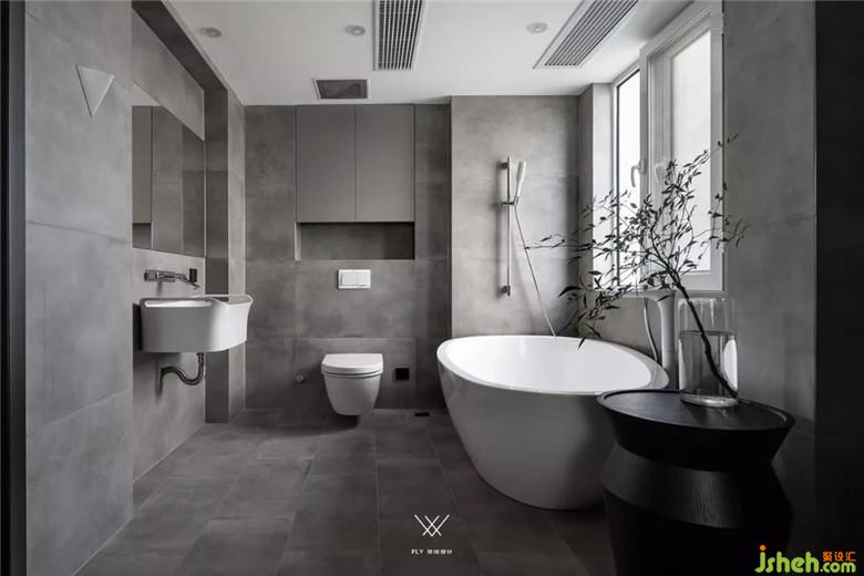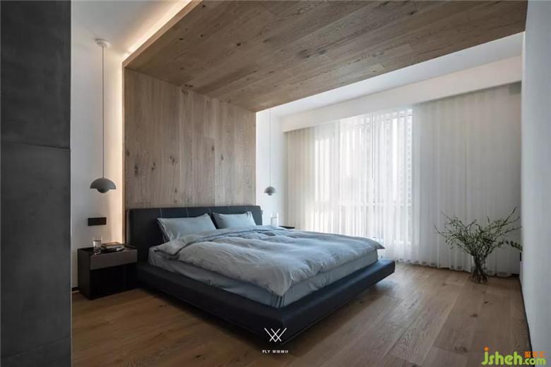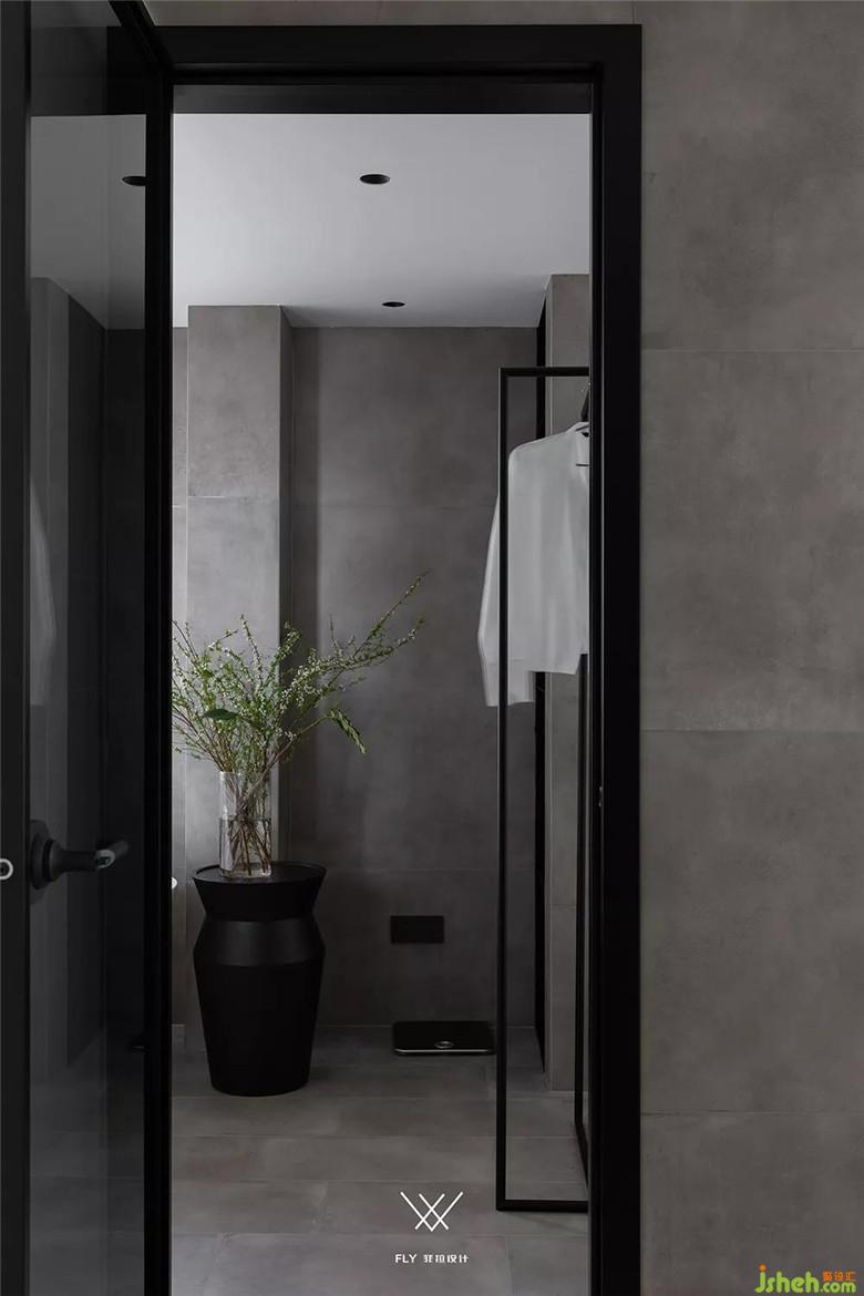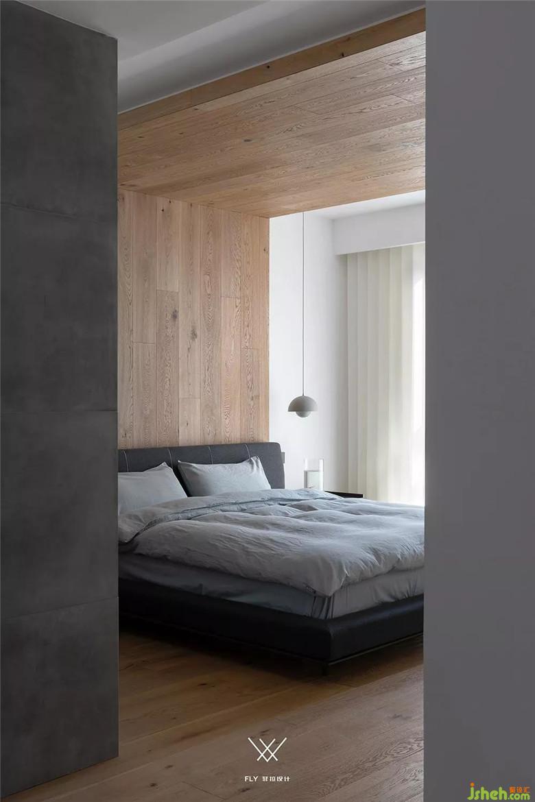 主臥沒有做過多的修飾,床頭背景也僅僅是與地板聯(lián)通一體來將床圍合起來,讓休息空間更有安全感。燈光以柔和的燈帶為主光源,通過與床背景的造型結(jié)合,來提供主臥空間的照明。因為是自己的私人空間,所以在主臥與主衛(wèi)之間也只是用了一塊透明的玻璃。這樣既能夠擴大主臥的體量感,同時也能讓主臥的采光進入衛(wèi)生間加強空間感。因為主臥在色調(diào)用白色與原木色相互結(jié)合,為了空間的呼應性,色調(diào)的統(tǒng)一性,將主衛(wèi)以灰色調(diào)呈現(xiàn),選擇了與風格相搭的水泥磚,來讓主衛(wèi)和主臥協(xié)調(diào)的聯(lián)系在一起。