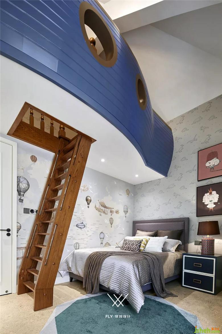男孩房做了一個海盜船的主題,對孩子來說,有了這樣的臥室,讓他們“回房間去”再也不是一種懲罰了。給我攻下托爾圖加島·····咦?等一下,里面有個小朋友正在睡覺呢!哇……但愿孩子們睡覺的時候不會暈船。