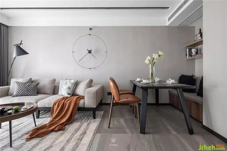 設(shè)計(jì)師應(yīng)該考慮每一件東西的設(shè)計(jì)語言,這樣才能夠圍繞整體的設(shè)計(jì)主題來展開設(shè)計(jì),每處都聚焦于一點(diǎn)??蛷d的軟裝鐘掛件,是西班牙品牌nomon的現(xiàn)代簡(jiǎn)約個(gè)性創(chuàng)意掛鐘。只用非常簡(jiǎn)單的幾何線條勾勒而成,簡(jiǎn)單而有條理。但在墻上的影子隨著時(shí)間變化而有不同造型,平淡中見神奇。